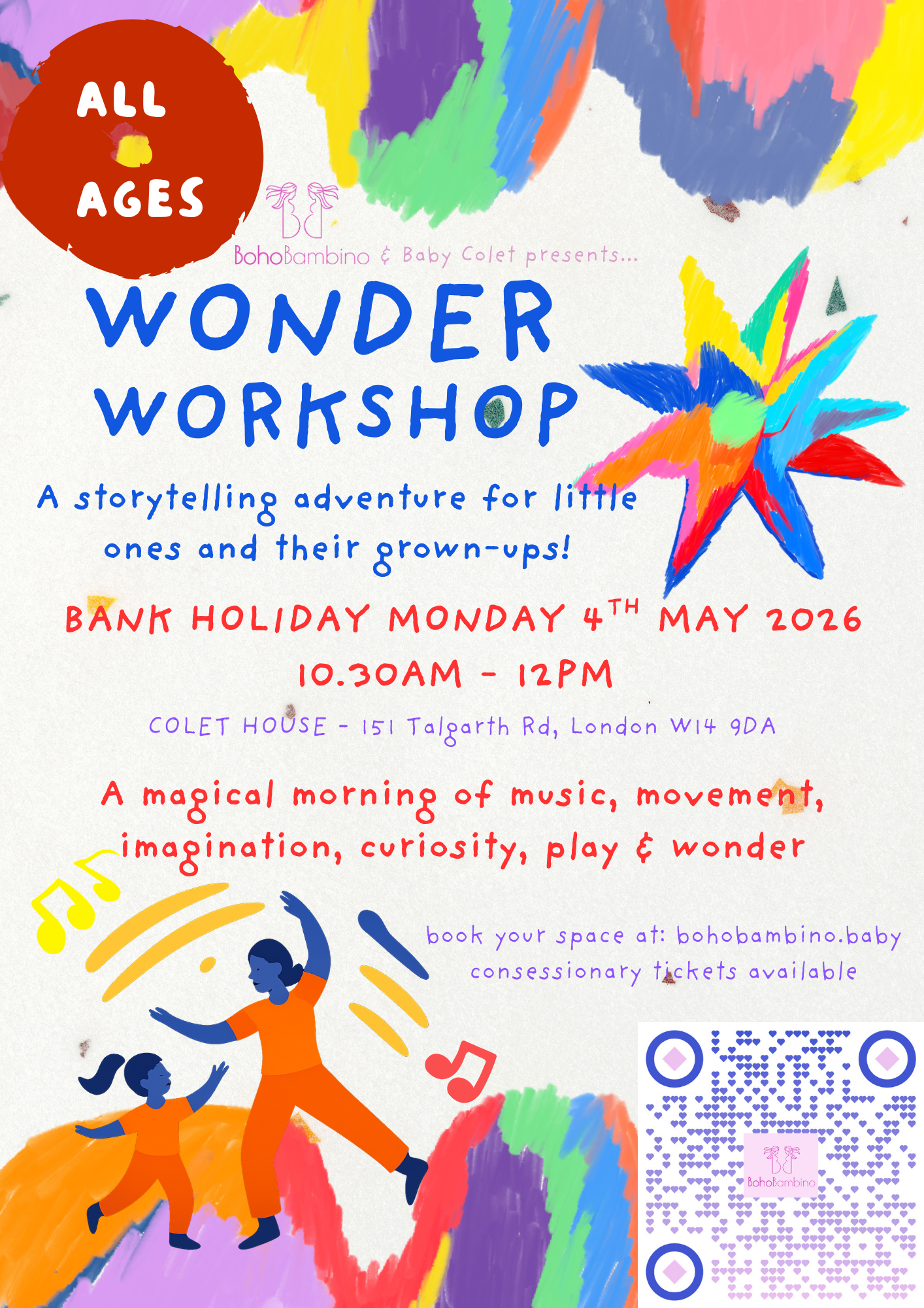 Join us for this special ‘Wonder Workshop’ on Monday 4th May! In collaboration with Boho Bambino and Colet House: